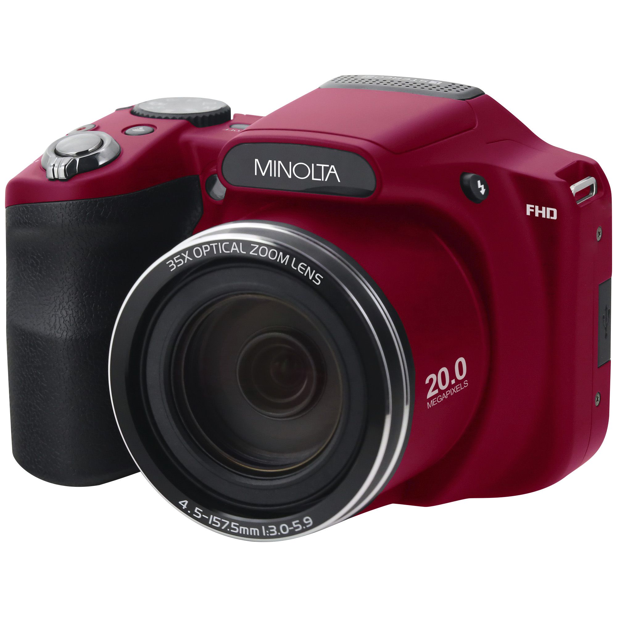 minolta 20mp full hd 35x zoom wi fi bluetooth digital bridge camera bundle red