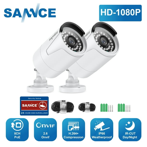sannce 2mp poe securtiy camera add on bullet ip cameras video audio recording 100ft night vision motion detection metal housing wheatherproof